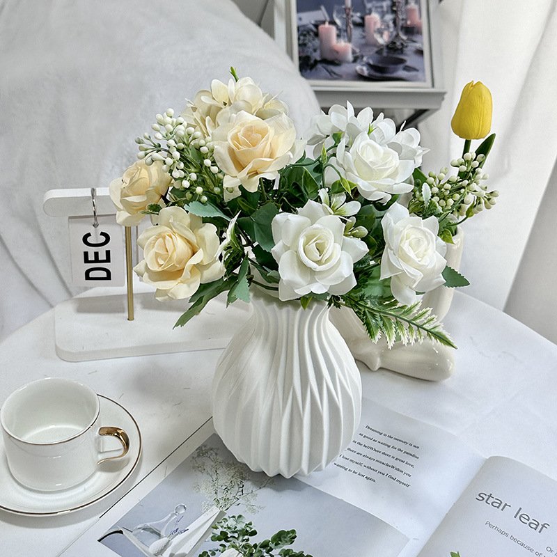 بارتفاع إجمالي يبلغ 27 سم، يحتوي كل ساق على 5 شوكات مع 3 أزهار (قطرها 6 سم، وقطر البتلات 4 سم)، و16 بتلة من الكوبية ومجموعة واحدة من التوت، مما يضفي مظهرًا خصبًا وحالمًا. تزن القطعة الواحدة 0.04 كجم، فهي خفيفة الوزن لكنها كبيرة بما يكفي لتناسب مختلف إعدادات الديكور.