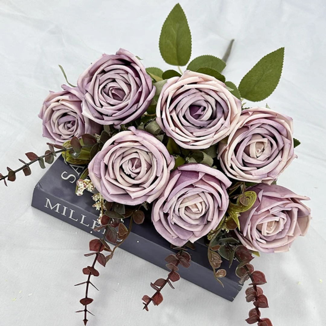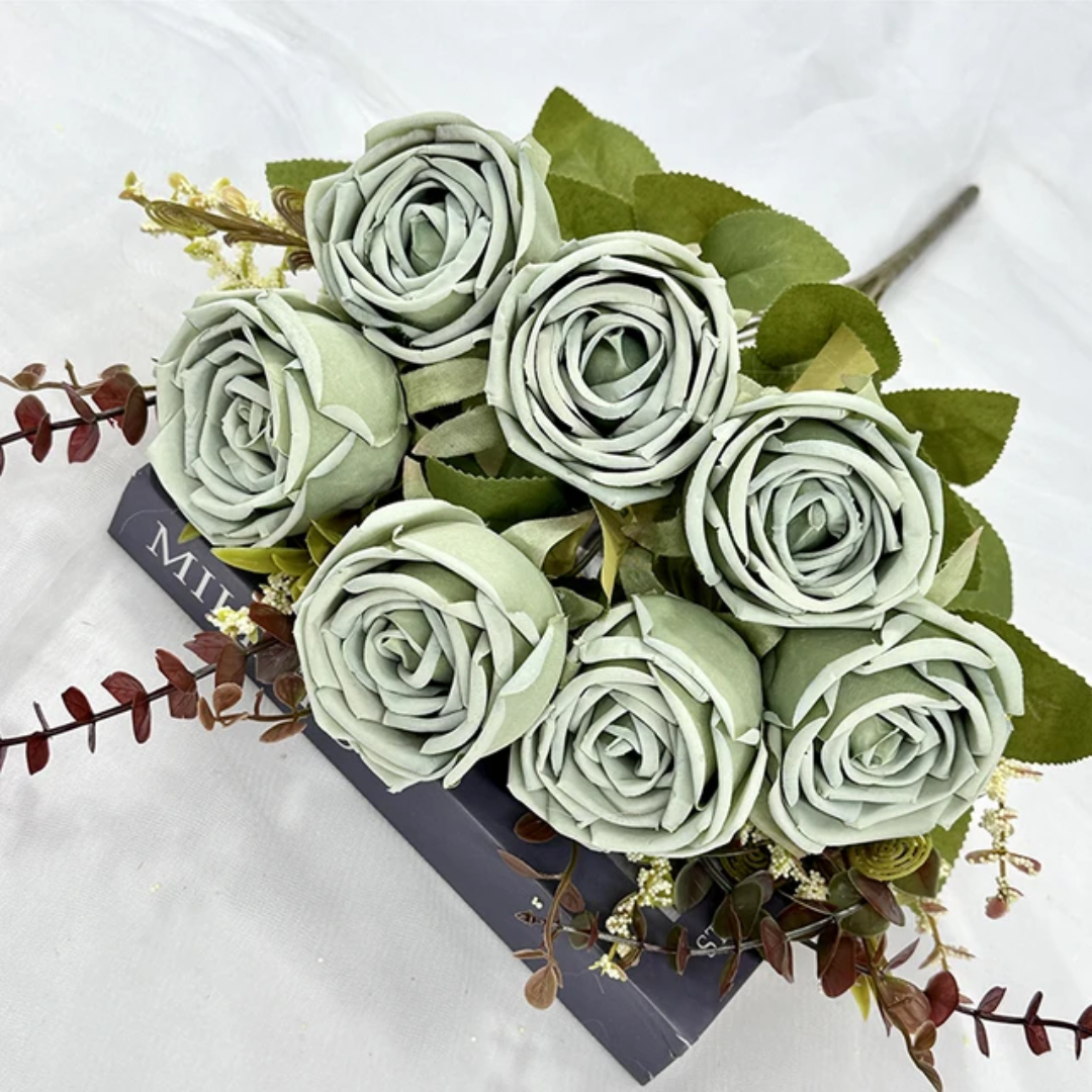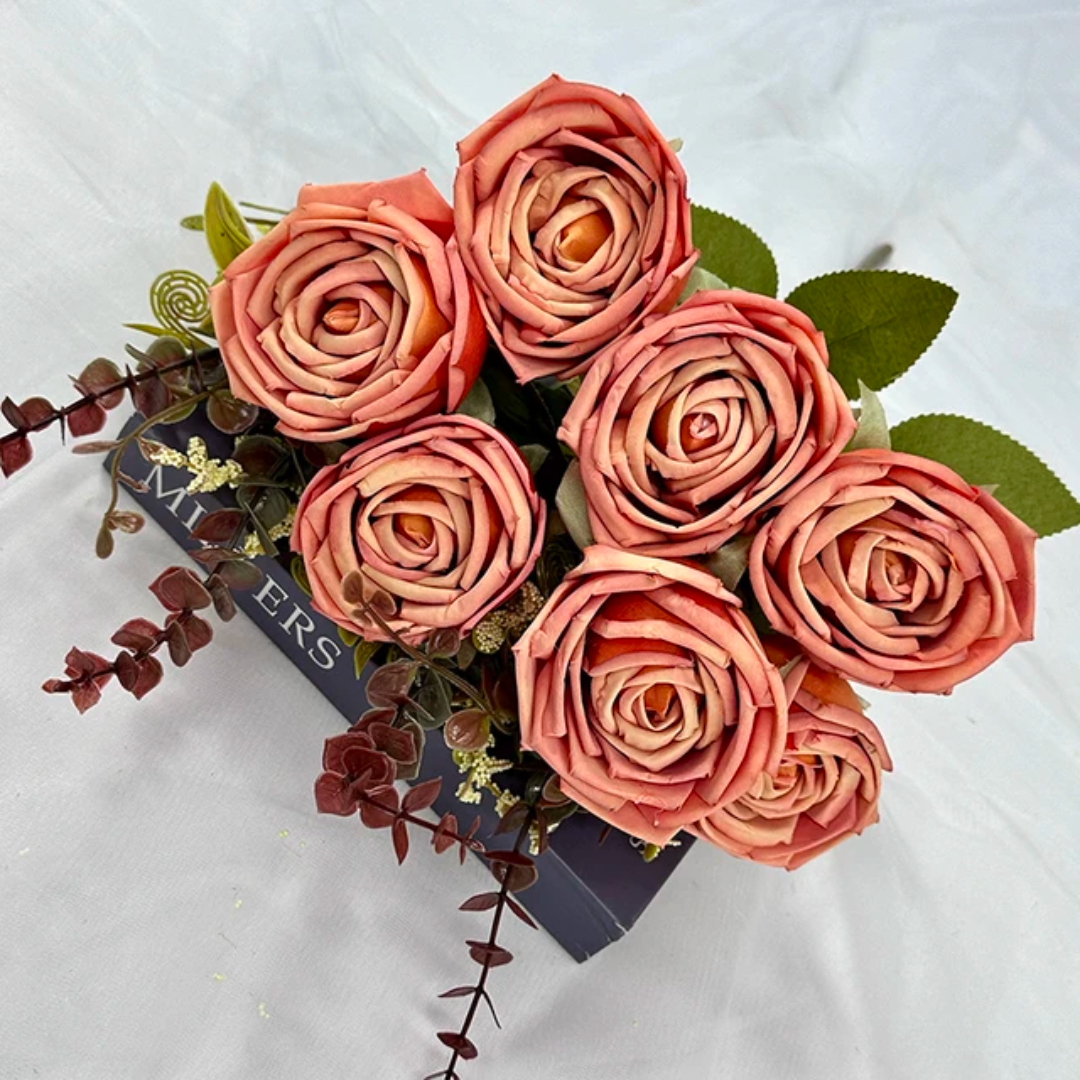 Apportez le charme élégant des roses à votre espace avec notre Fleur Artificielle Rose 11 Têtes à Bord Courbé ! Fabriquée en tissu enduit, chaque fleur présente une texture réaliste et une belle apparence, complétée par des accessoires en riz d'eucalyptus pour une touche supplémentaire de beauté naturelle.