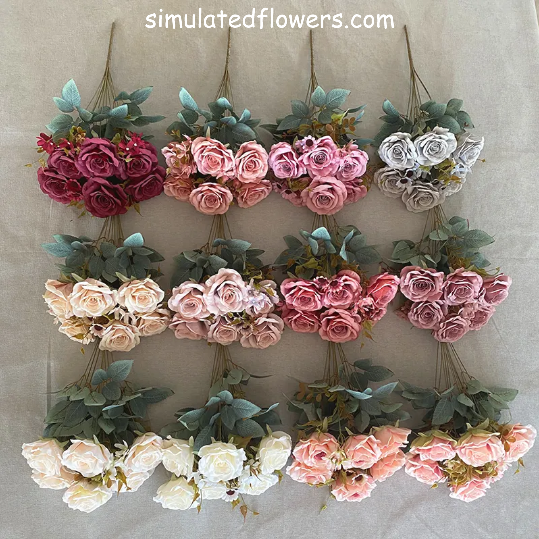 Apportez le charme élégant des roses à votre espace avec notre fleur artificielle de rose thaïlandaise à 11 têtes ! Fabriquée en tissu enduit, chaque fleur présente une texture réaliste et une belle apparence, complétée par des accessoires en riz d'eucalyptus pour une touche supplémentaire de beauté naturelle.