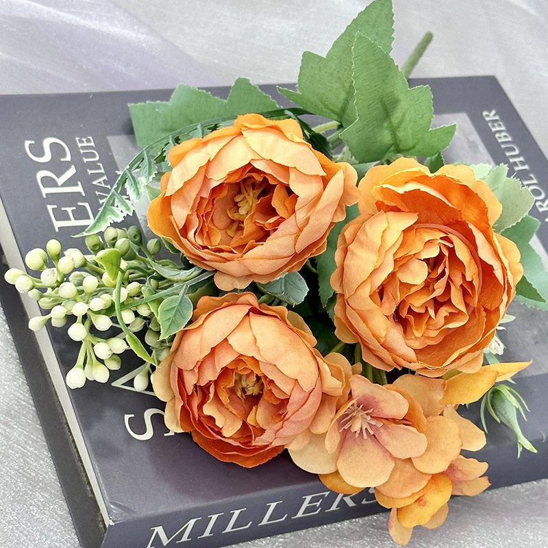 Com uma altura total de 26 cm, cada caule tem 5 garfos com 3 flores (5 cm de diâmetro) e acessórios de flores silvestres (4 cm de diâmetro), criando uma exposição exuberante e de aspeto natural. Com um peso de 0,04 kg por peça, é leve mas suficientemente substancial para várias configurações de decoração.